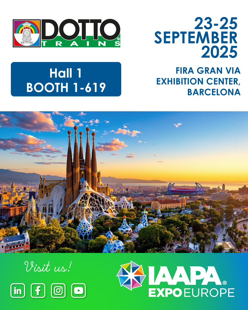 Dotto Trains è lieta di invitarLa alla IAAPA EXPO EUROPA 2025 che si terrà ad Barcellona dal 23 al 25 Settembre 2025.